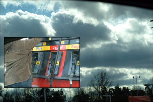 When we pulled in to get gas, the car was just fine. As we pulled out there was this noise coming from the front passenger-side tire area. Not wanting to tear-up a car so new it still didn’t have plates, we considered what to do next. It being a Sunday, no repair shops were open and with Monday being a holiday...