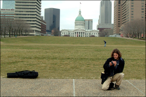 Our actions had caught Brett's attention - so I asked him to email me some of his pictures - when I walked up to him he asked me, "What's the good word?" I'm not sure he was expecting the answer he got - I said, "We're declaring God's promises - which are Faithful and True - over this city." He looked at me sort of blankly, but he still took a shot of us all together. We prayed blessings for him.